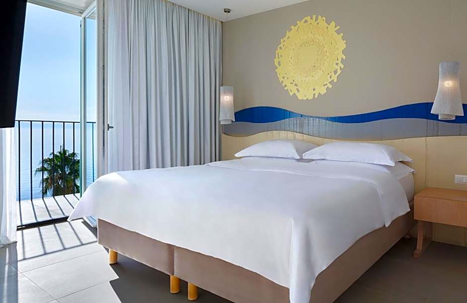 Spacious, air-conditioned Junior Suite with direct swim-up access from the pool and a sun terrace. Amenities include a satellite TV, a mini bar, and a coffee machine. The private bathroom comes with a shower.